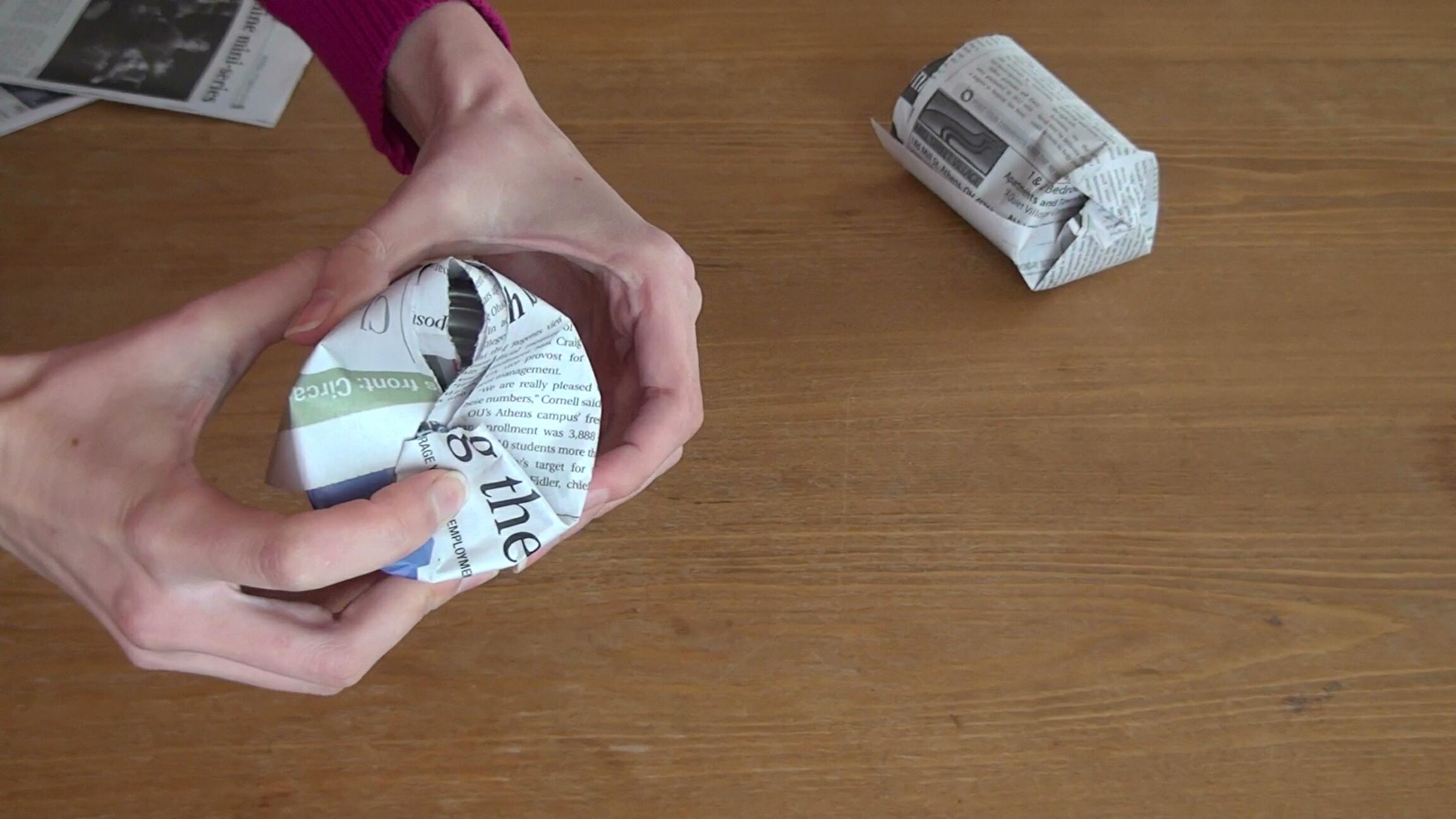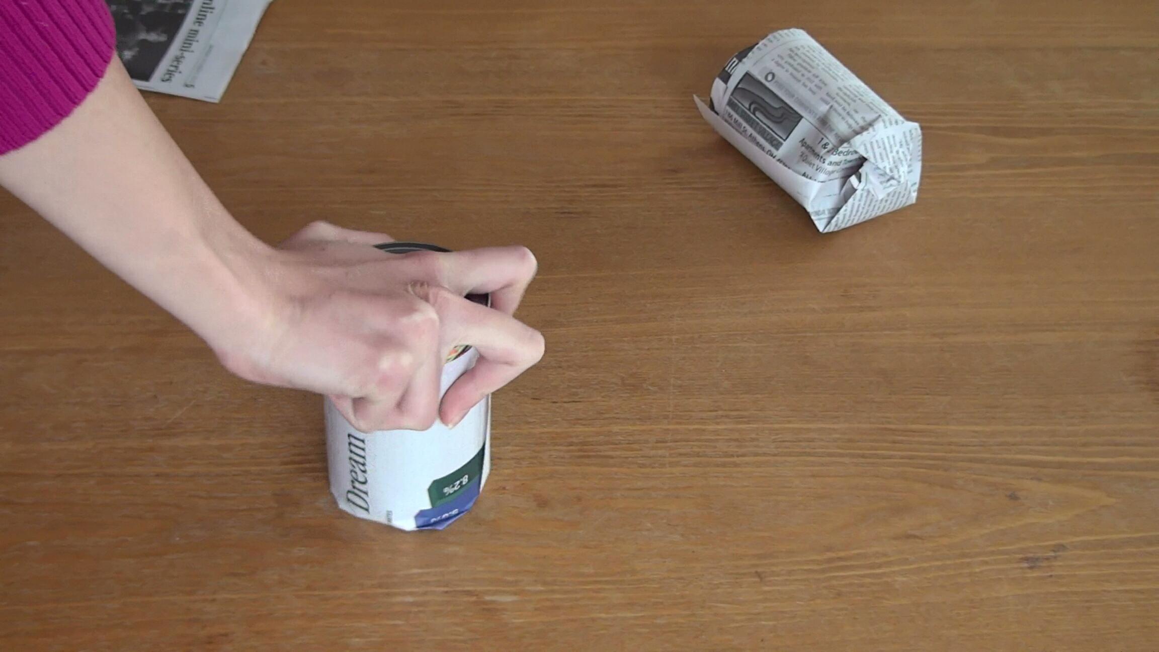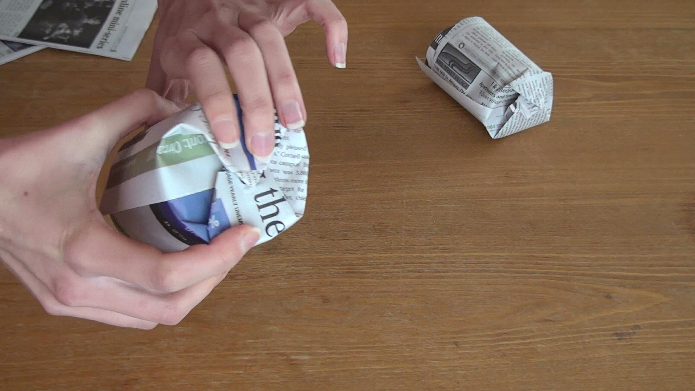 Roll the newspaper around the can a couple of times, do not do it too tight, because you will have to remove the can and it would be difficult if you rolled it too tight.